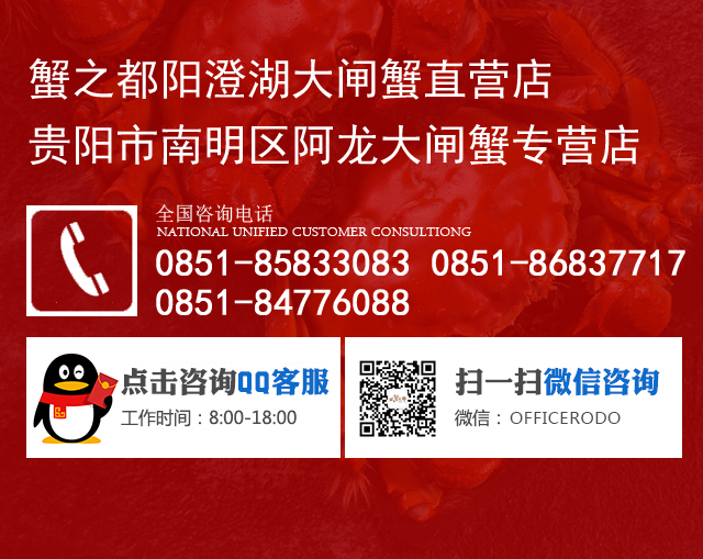 贵阳市南明区阿龙大闸蟹专营店—— 贵阳市南明区阿龙大闸蟹专营店是阳澄湖大闸蟹在贵阳的专卖店。贵阳最正宗阳澄湖大闸蟹供应商,阳澄湖大闸蟹闻名天下,鲜盖百味。湖底水草丰茂,野生水物资源丰富,天然水质无污染,清澈见底,理化指标大到饮用水标准,地理位置得天独地,交通方便。拥有养殖水面1200亩,是无公害养殖基地。 2005年,国家对阳澄湖大闸蟹实行了原产地域产品保护。阳澄之霸养殖场,养殖,…